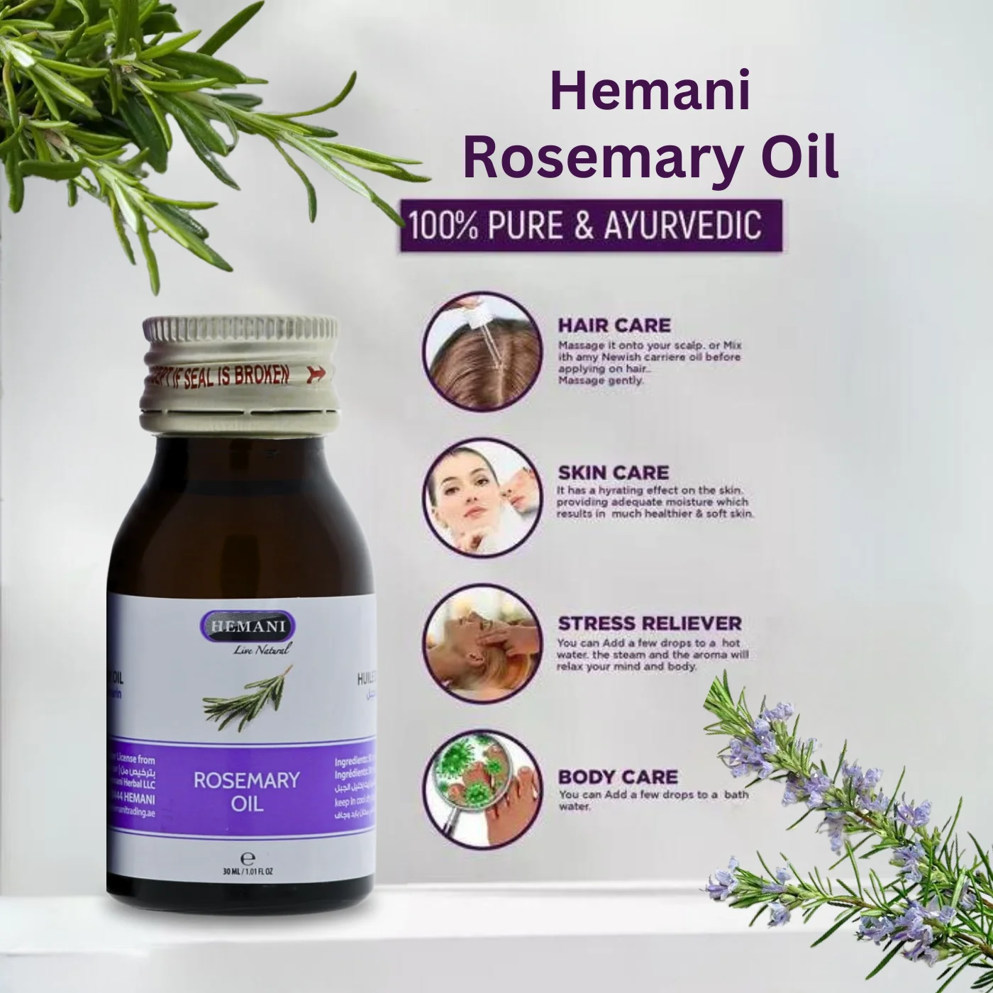 + Free ShippingHemani Rosemary Oil is regular use of the in getting rid of dandruff and also grows the hair stronger and longer. Commonly used as a mouth freshener to remove bad breath. Helps in relieving muscle pain and headaches.
